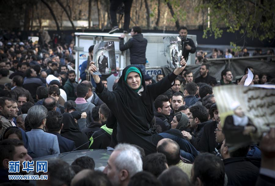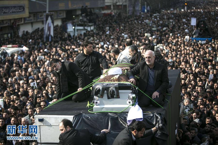 1月10日,在伊朗德黑蘭,民眾圍繞伊朗前總統(tǒng)阿克巴爾·哈什米·拉夫桑賈尼的靈車悼念送別。新華社發(fā)(艾哈邁德·哈拉比薩斯攝)