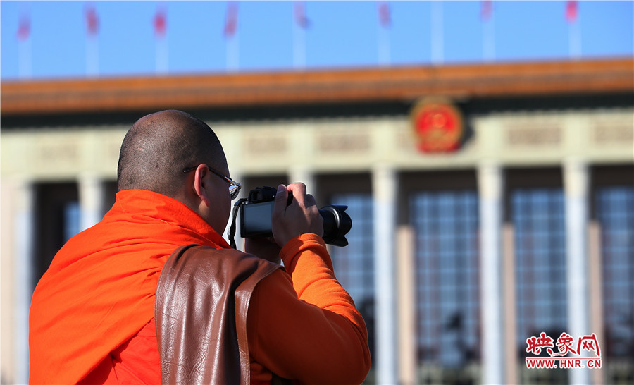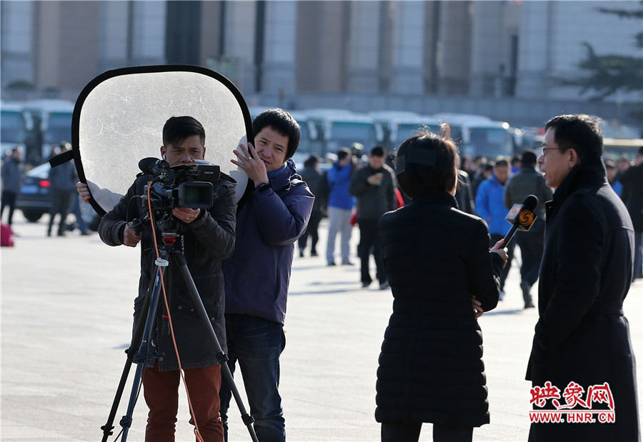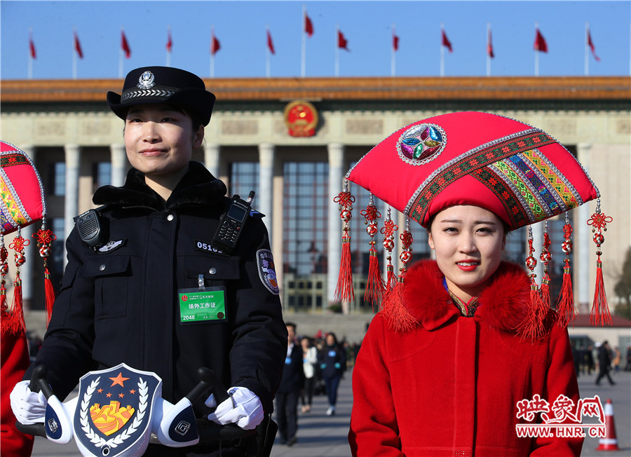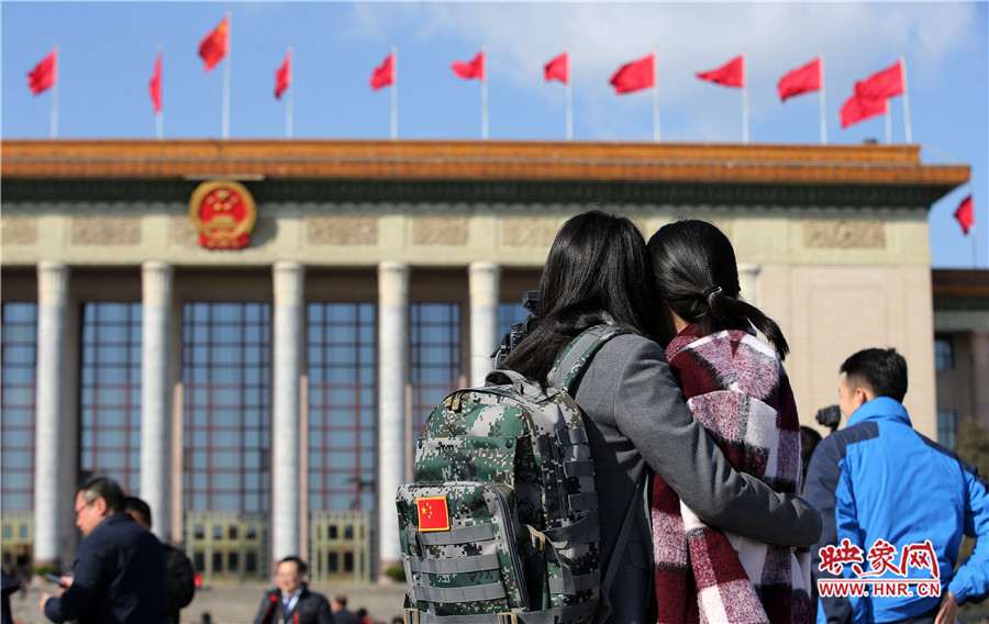 映象網(wǎng)北京訊(大象融媒飛象隊記者 段晉哲 文/圖)2017年3月5日,第十二屆全國人大五次會議在人民大會堂召開。場外的記者、安保人員、服務(wù)人員、保潔人員等都用自己的方式參與其中。他們在天安門廣場上和人民大會堂前,都留下了自己最美麗的身影。