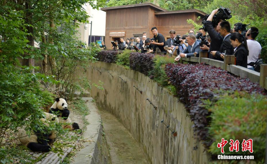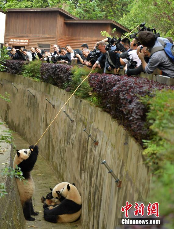 5月2日,丹麥?zhǔn)紫嗬鼓律瓉?lái)到成都大熊貓繁育研究基地看大熊貓,并“品嘗”熊貓窩窩頭。當(dāng)日,應(yīng)中國(guó)國(guó)務(wù)院總理李克強(qiáng)邀請(qǐng),丹麥?zhǔn)紫嗬鼓律D行抵達(dá)中國(guó)成都,開(kāi)始對(duì)中國(guó)進(jìn)行正式訪問(wèn),拉斯穆森此訪系其2015年當(dāng)選首相以來(lái)首次訪華,其訪問(wèn)首站就來(lái)到四川成都。中新社記者 劉忠俊 攝