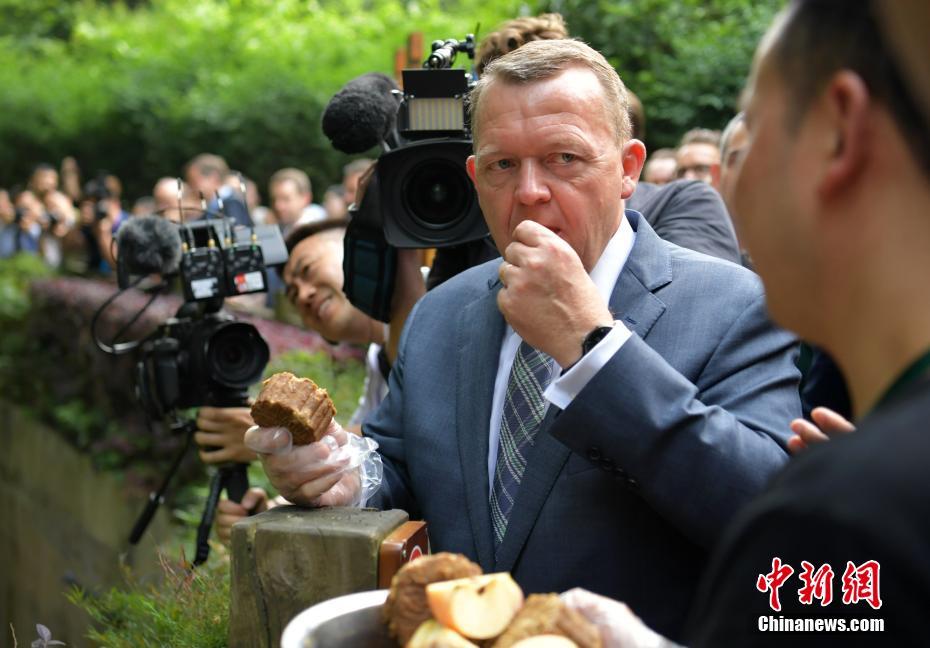 5月2日,丹麥?zhǔn)紫嗬鼓律勾笮茇埑蕴O果。當(dāng)日,應(yīng)中國(guó)國(guó)務(wù)院總理李克強(qiáng)邀請(qǐng),丹麥?zhǔn)紫嗬鼓律D行抵達(dá)中國(guó)成都,開(kāi)始對(duì)中國(guó)進(jìn)行正式訪問(wèn),拉斯穆森此訪系其2015年當(dāng)選首相以來(lái)首次訪華,其訪問(wèn)首站就來(lái)到四川成都。中新社記者 劉忠俊 攝