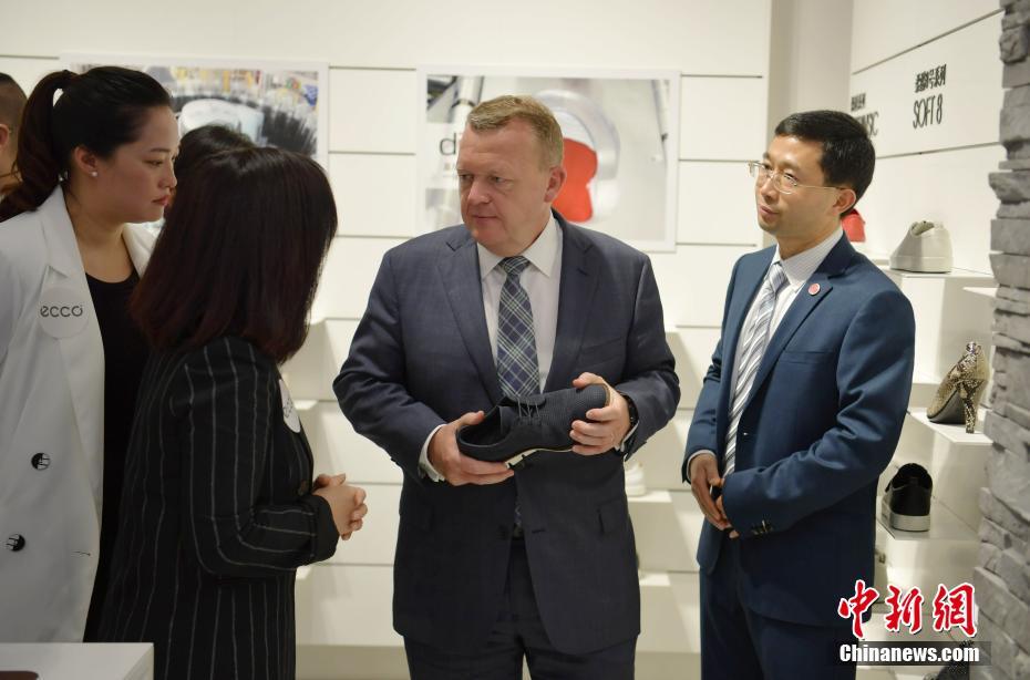 5月2日,丹麥?zhǔn)紫嗬鼓律构涮爬?,走進(jìn)1963年創(chuàng)立于丹麥的“愛(ài)步”鞋類品牌店了解情況。當(dāng)日,應(yīng)中國(guó)國(guó)務(wù)院總理李克強(qiáng)邀請(qǐng),丹麥?zhǔn)紫嗬鼓律D行抵達(dá)中國(guó)成都,開(kāi)始對(duì)中國(guó)進(jìn)行正式訪問(wèn),拉斯穆森此訪系其2015年當(dāng)選首相以來(lái)首次訪華,其訪問(wèn)首站就來(lái)到四川成都。中新社記者 劉忠俊 攝