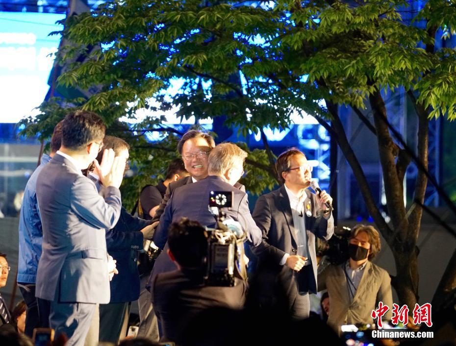 當(dāng)?shù)貢r(shí)間5月9日深夜,韓國(guó)第19屆總統(tǒng)選舉共同民主黨候選人文在寅及其競(jìng)選團(tuán)隊(duì)現(xiàn)身首爾光化門廣場(chǎng),發(fā)表“勝選演說(shuō)”,與支持民眾握手慶祝。據(jù)出口民調(diào)顯示,文在寅在當(dāng)日進(jìn)行的大選投票中以41.4%的支持率絕對(duì)優(yōu)勢(shì)勝選。在選舉管理委員會(huì)公布的大部分開票結(jié)果中,文在寅得票率也遙遙領(lǐng)先,提前鎖定勝局。 中新社記者 吳旭 攝