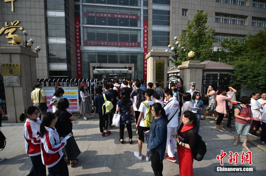 6月7日,2017年高考大幕正式拉開,全國(guó)將有940萬考生參加考試。今年可謂是高考?xì)v史上的特殊年份,一方面,今年是高考恢復(fù)40周年,另一方面,今年也被稱為“新高考元年”,高考綜合改革試點(diǎn)地區(qū)的考生將迎來首次“新高考”。圖為北京市171中學(xué)考點(diǎn)的考生陸續(xù)進(jìn)入考場(chǎng)。中新網(wǎng)記者 金碩 攝
