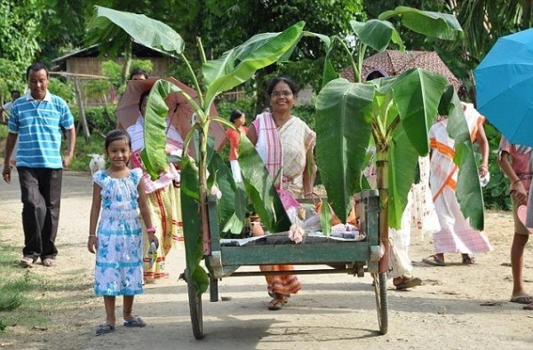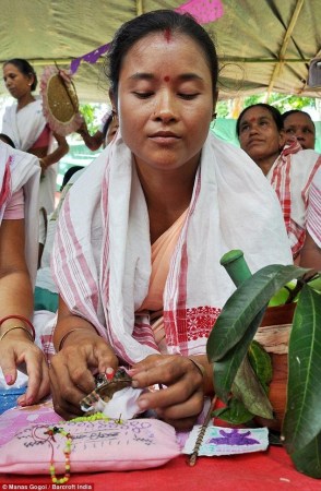 在婚禮上,主持婚禮的圣徒吟誦傳統(tǒng)的祈禱詞,婚禮結(jié)束后,青蛙會(huì)被帶到附近的小池塘放生。村民則繼續(xù)用餐,有超過(guò)900盤(pán)食物被供應(yīng)。參加儀式的村民Gogoi說(shuō):“我們放生青蛙,這樣它們可以過(guò)它們自己的生活,同時(shí)向雨神傳達(dá)我們的信息。舉行這樣的儀式是不得已的措施,我們感謝上帝能夠讓我們的愿望成真?!?/p>