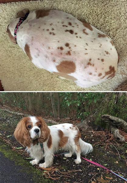 阿比之前總是暴飲暴食,而且也不鍛煉。久而久之,它變得越來(lái)越胖,每走一步都要停下來(lái)喘喘氣,因此只能坐在小推車(chē)?yán)锉蝗送浦摺?016年5月,阿比主人的鄰居很擔(dān)心它的健康情況,于是聯(lián)系了當(dāng)?shù)氐膶櫸锞仍行?。該中心的工作人員與阿比的主人 溝通后,順利把它帶去了中心幫它減肥。