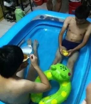 對(duì)于沒有空調(diào)的宿舍,夏天是最難熬的??磥頌榱吮苁?,童鞋們想盡了各種奇葩招數(shù)??!宿舍居然還有泳池!!很清涼啊!!有木有?。?!