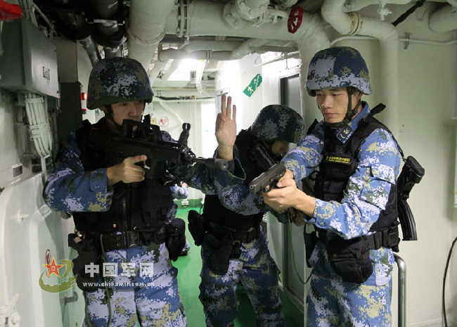 海軍第十一批護航編隊赴亞丁灣、索馬里海域執(zhí)行護航任務以來,針對海況復雜多變,海盜活動更趨隱蔽、猖獗、頻繁等嚴峻特點,編隊指揮所科學籌劃護航行動,研究掌握海盜活動的特點規(guī)律,合理安排值更執(zhí)勤,加強巡邏警戒,狠抓各項制度落實,搞好預想預測,完善多套方案預案,著力提高快速反應能力。在查證、驅離疑似海盜船只時,確保預先發(fā)現(xiàn)、快速反應、掌握主動,把兩個“百分之百”要求落到實處。圖為3月下旬編隊實施護航行動時的一組場景。