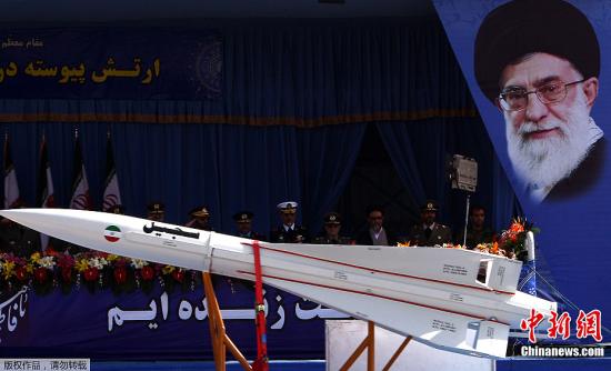 當?shù)貢r間2012年4月17日,伊朗舉行大型軍隊閱兵式慶祝建軍節(jié)。圖為伊朗Sejil導(dǎo)彈(泥石-2)開過檢閱臺。