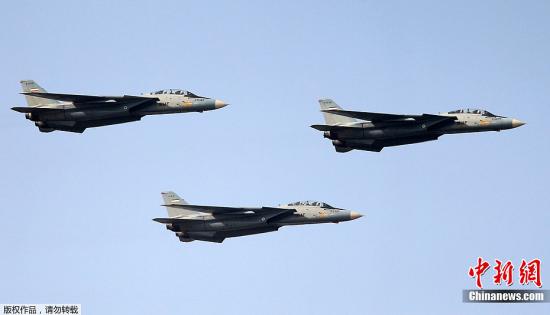 當?shù)貢r間2012年4月17日,伊朗舉行大型軍隊閱兵式慶祝建軍節(jié)。圖為伊朗空軍F-14戰(zhàn)機飛過檢閱臺。