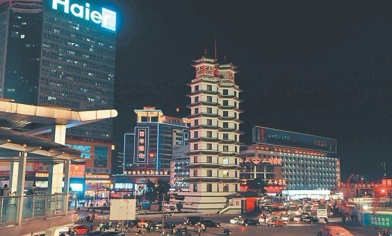 圖為景觀燈關(guān)閉后的二七廣場。