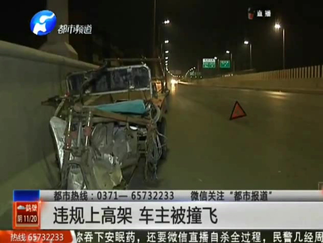 電動三輪違規(guī)上高架 車主被撞飛