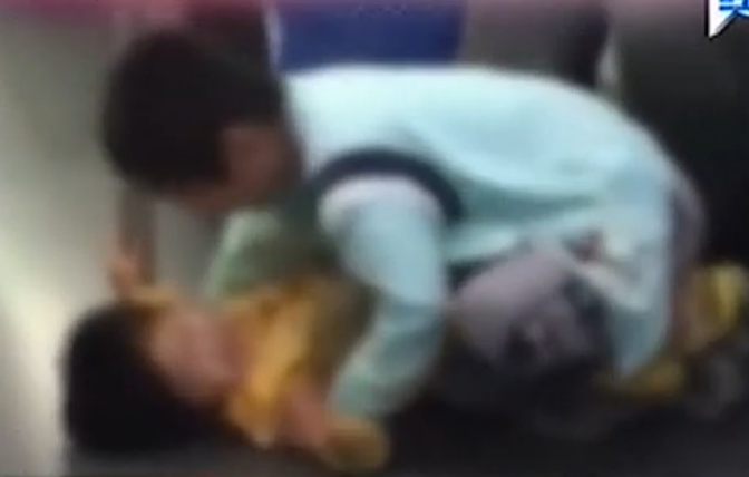 • 地鐵內(nèi)小男孩按倒小女孩親嘴