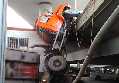 • 貨車“耍雜技” 掉下立交橋