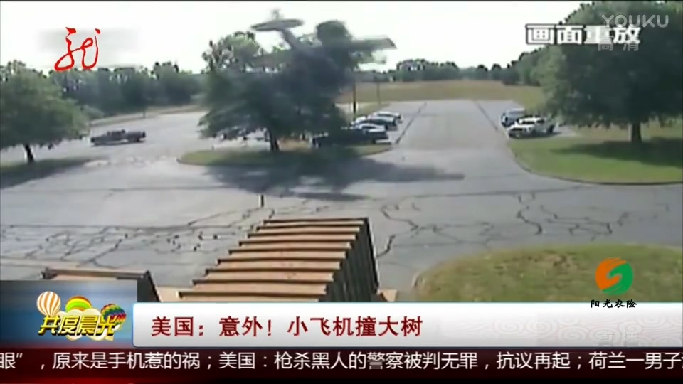 驚險!小飛機降落撞大樹
