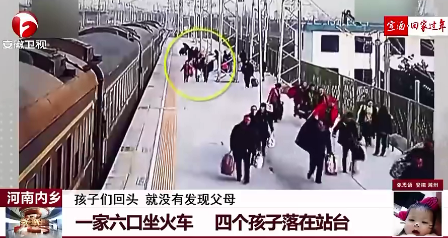 一家六口坐火車(chē) 四個(gè)孩子落在站臺(tái)