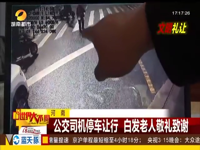 公交停車讓行 老人敬禮致謝