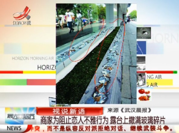 商家在露臺(tái)撒滿玻璃碴阻止戀人不雅行為