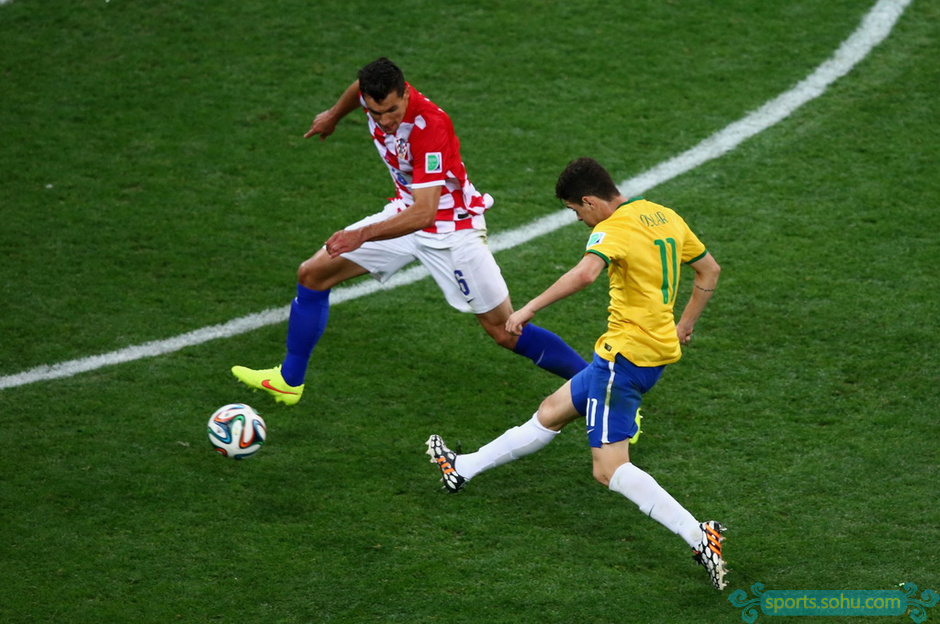 在巴西和克羅地亞的比賽最后時刻,拉米雷斯中場斷球,奧斯卡單騎闖關(guān),在禁區(qū)邊緣一記捅射再次洞穿普萊蒂科薩的十指關(guān),3-1,巴西鎖定勝局。最終,巴西隊?wèi){借內(nèi)馬爾的2個進(jìn)球,3-1逆轉(zhuǎn)克羅地亞贏得本屆世界杯的開門紅。圖為奧斯卡捅射瞬間