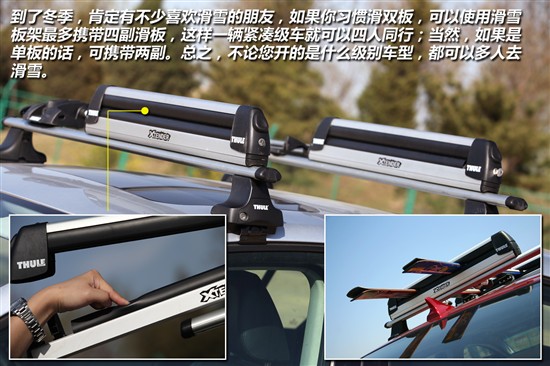 如果您是一個(gè)狂熱的戶外運(yùn)動(dòng)愛好者,還可以選擇安裝滑雪板架或船架?;┌寮荏w積小巧,適合安裝在各類車型上,按照普通規(guī)格的滑雪板架可攜帶4組滑雪雙板或者1個(gè)滑雪單板。不過(guò)如果安裝船架,就對(duì)您的座駕有所要求了,并不是因?yàn)榇艿陌惭b復(fù)雜,而是在安裝了船體之后,超出部分的長(zhǎng)度在交規(guī)中是有規(guī)定的,所以最好是使用中級(jí)車以上(包含中級(jí)車)的車型。