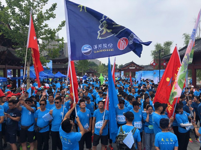 隨著洋河股份開封分公司總經(jīng)理唐儀龍打響發(fā)令槍,數(shù)千跑者沖破起終點線,在驕陽碧空下盡情奔跑。