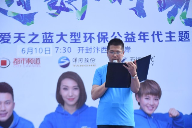 洋河股份開封分公司總經(jīng)理唐儀龍到場致辭,號召開封的朋友們用跑步的方式,傳遞快樂,關(guān)注環(huán)保,共同守護天之藍。河南廣播電視臺都市頻道主持人林泉和杜瑞雪主持本次活動。