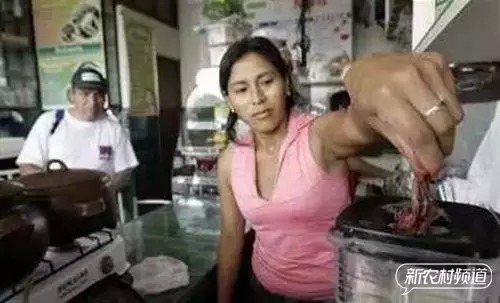 在秘魯首都利馬,商家將活生生的青蛙扔進(jìn)榨汁機(jī)輾成肉泥,同時加入蜂蜜和蘆薈等植物做成飲料供顧客飲用。據(jù)稱,這種“青蛙汁”在當(dāng)?shù)氐墓ば诫A層中十分受歡迎,很多人堅信這種“飲料”能夠強(qiáng)身健體,解除疲勞,甚至對性功能低下也有神奇的治療效果。