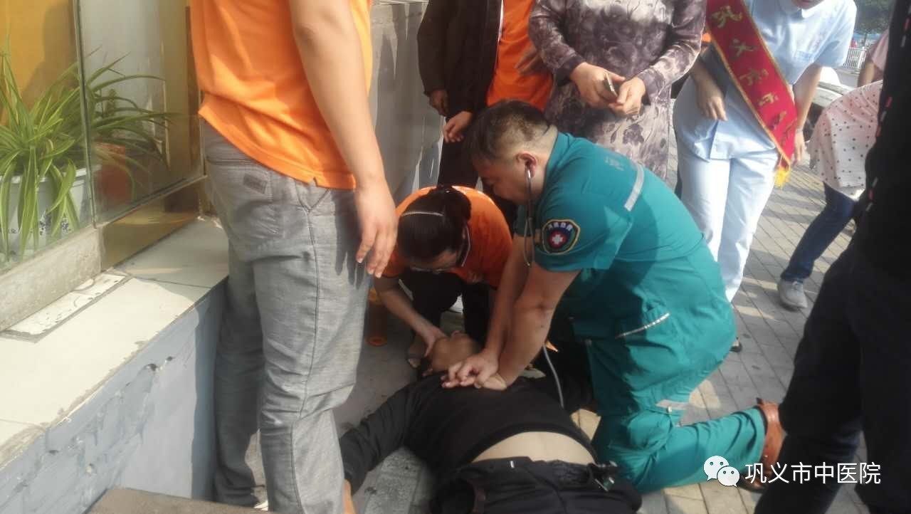 “我是護士,讓我來!”喬紅連忙上前,向?qū)Ψ奖砻孀约菏庆柫x市中醫(yī)院護士后,趕緊上前查看,發(fā)現(xiàn)頸動脈搏動微弱,橈動脈消失,呼吸輕微,雙目上翻,瞬間大動脈搏動消失,多年的臨床經(jīng)驗判斷為“心臟驟?!?,情況十分危急,當(dāng)即把暈倒老人放平,喬紅顧不上自己穿著短裙行動不便,迅速雙膝跪地開始實施徒手心肺復(fù)蘇。同時,讓圍觀群眾撥打急救電話。