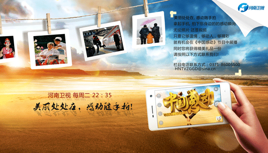 生活中某些情景在瞬間即能帶來感動,它適于簡潔有力地表現(xiàn)。感動隨手拍邀請您遇到生活的感動瞬間,或樂于助人,或見義勇為,或甘于奉獻,甚至只是讓你有所觸動的溫情瞬間,請隨手拍下照片或者視頻。河南衛(wèi)視《中國感動》欄目將在結(jié)尾以集錦的形式播出。一旦被節(jié)目選上 登上節(jié)目播出就會有獲獎資格。