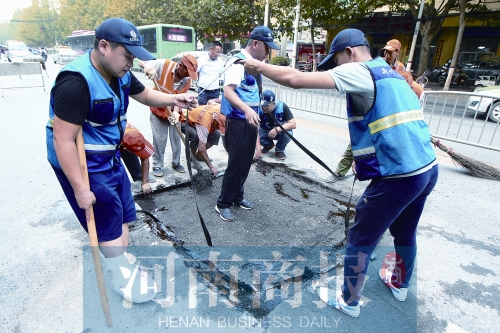 臺風(fēng)“天鴿”讓鄭州下了幾天的雨,許多道路積水塌方車輛陷進去。中央氣象臺預(yù)報臺風(fēng)“帕卡”已經(jīng)登陸南方,受其影響鄭州又將面臨幾天的降雨,道路養(yǎng)護工們要趕在降雨前修復(fù)路面坑槽,預(yù)防各種危害的發(fā)生。
