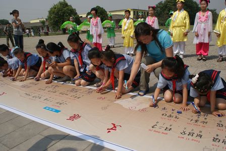 近日,由安陽殷墟管理處、殷都區(qū)甲骨文少兒學校主辦的少兒甲骨文書法比賽在殷墟管宮殿宗廟遺址前廣場舉行。這一活動的主題為"傳承甲骨文明,夸家鄉(xiāng)安陽",中國小屯教育集團、安陽實驗小學等學校的100余明愛好甲骨文書法的學生參加了這一活動。